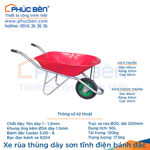 - xe rùa bánh đặc thùng dày sơn tĩnh điện được sản xuất với nguyên liệu cao cấp, hiện tại đây là dòng xe rùa phổ biến và được sử dụng nhiều nhất tại các công trình xây dựng trong những năm trở lại đây.